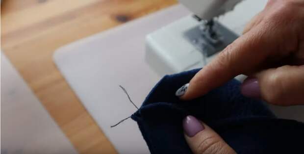 Выворачиваем заготовку налицо через оставленную пяточку подклада, которую затем зашиваем потайным швом.