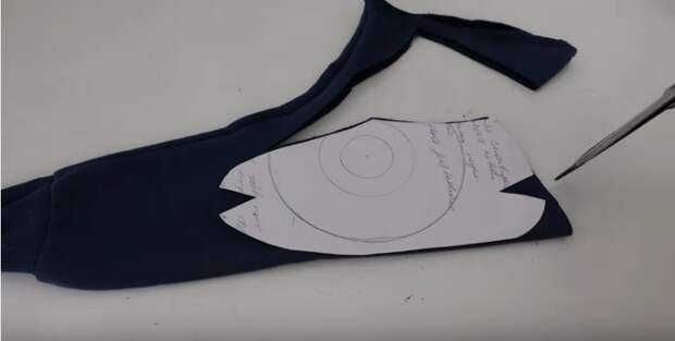 Затем берем выбранную кофту, начать можно с рукавов, фиксируем на ткани выкройку и вырезаем. В итоге у вас должна сразу получиться двойная деталь, поэтому ткань должна быть сложена вдвое. А чтобы не создавать дополнительный швов, лучше всего разместить выкройку так, чтобы сгиб на ткани приходился на линию подошвы.