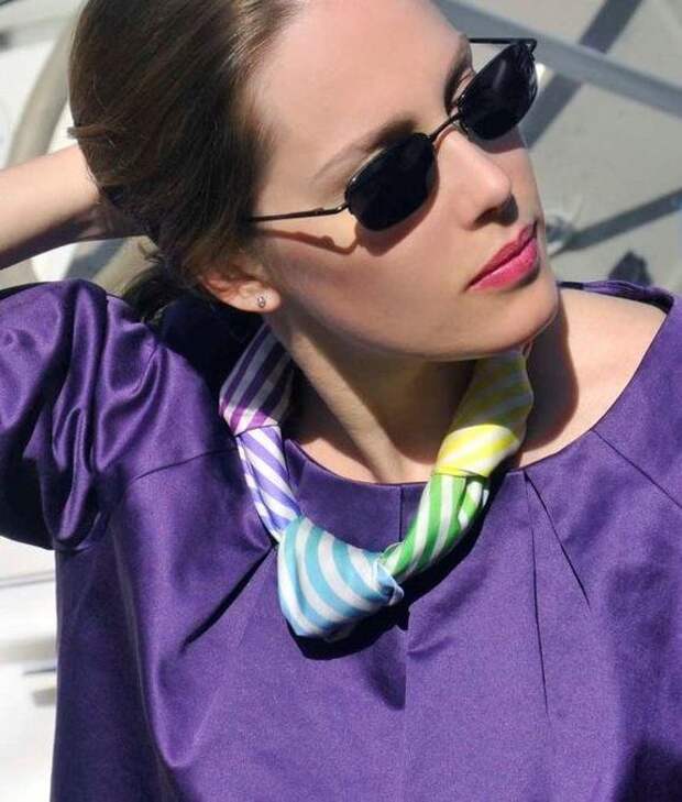 Начнём с банального: естественно, шёлковый платок носят на шее.