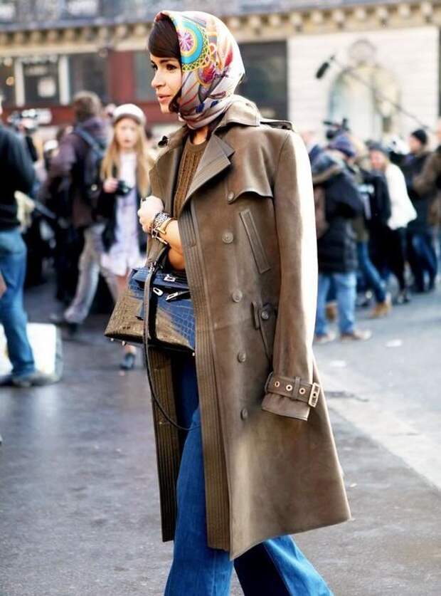 Между прочим, осень и зима не за горами. Дождь, первый снег — голова же должна оставаться в тепле (что бы там не говорила известная поговорка, вам не нужны отмороженные уши). Поэтому повторяем за восхитительной Мирославой Думой и надеваем шёлковый платок как обычную косынку. И да, теперь вы можете считать себя модницей в стиле а-ля рус.