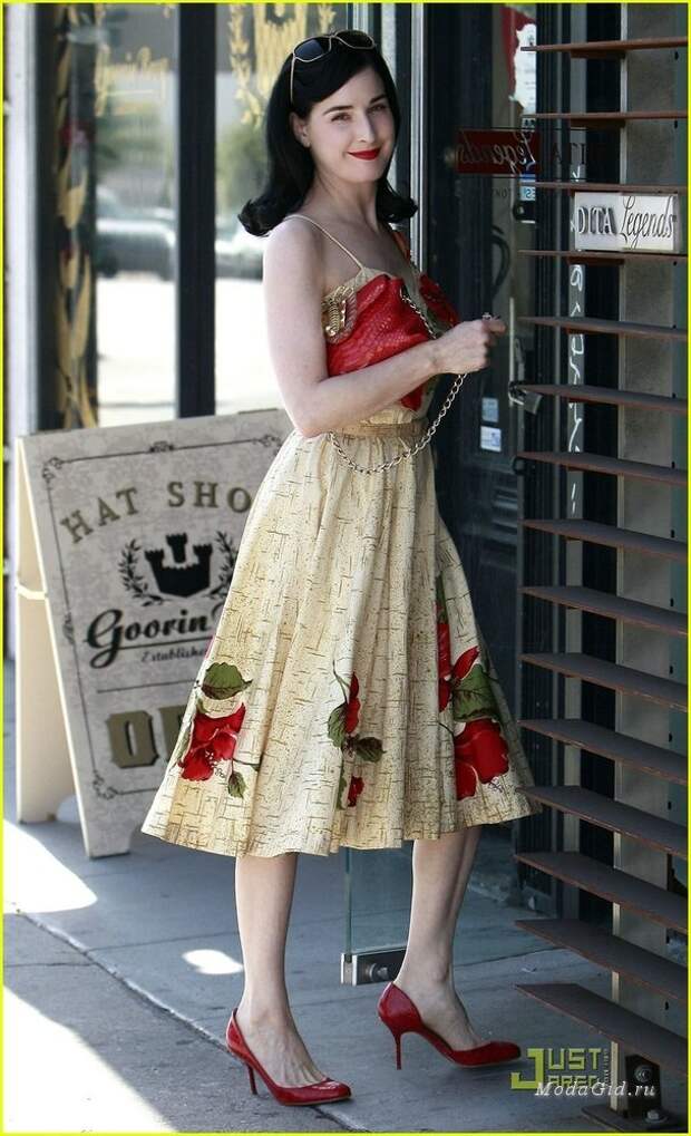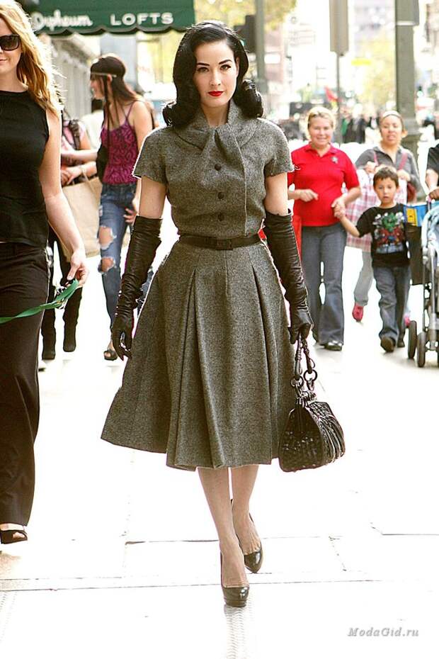 Дита фон Тиз, пожалуй, первая кто приходит в голову, когда думаешь о винтаже. Но это и неудивительно, так как она выступает в жанре бурлеск (эротическое шоу, которое было популярно в 30-е годы). Алые губы, бледная кожа, волосы цвета вороного крыла и наряды в духе Голливуда 40-х годов – Дита знает, как выглядеть на ура благодаря удачно собранному образу из мельчайших деталей. Она никогда не выходит на улицу в растянутой майке и джинсах по примеру некоторых других звезд, каждый ее выход в свет – безупречен.