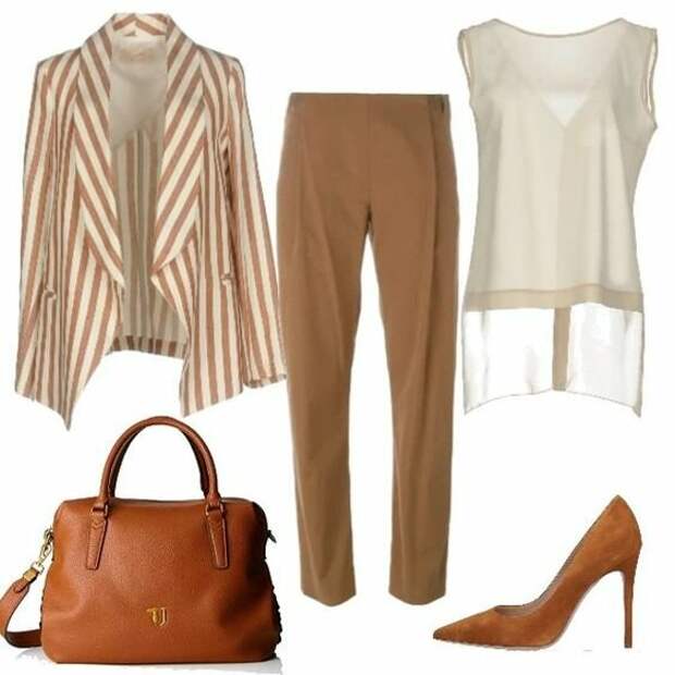 Такой фасон брюк красиво подчеркнет линию бедра и добавит женственности в ваш офисный стиль. Бежево-коричневые тона могут быть довольно строгими и по-деловому скучноватыми. Но разбавьте их интересным кроем и деталями – они заиграют новыми красками. И, как видите, обилие украшений абсолютно ни к чему.